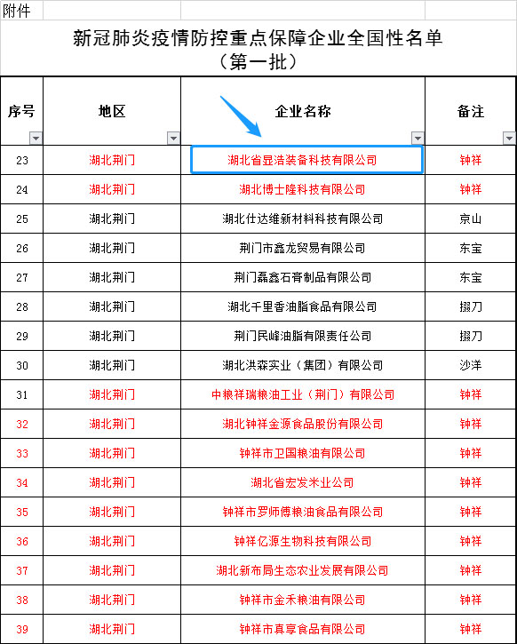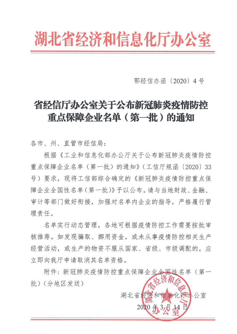 湖北顯浩被省經(jīng)信廳列為全國新冠肺炎疫情防控重點保障企業(yè)