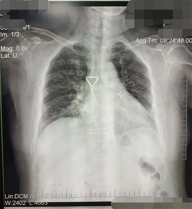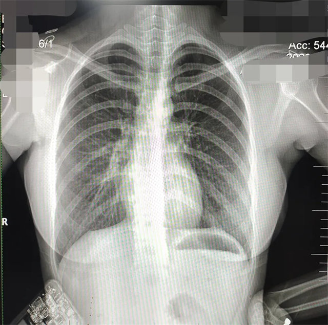 解決:去除手機后,使患者左側緊貼成像件曝光。