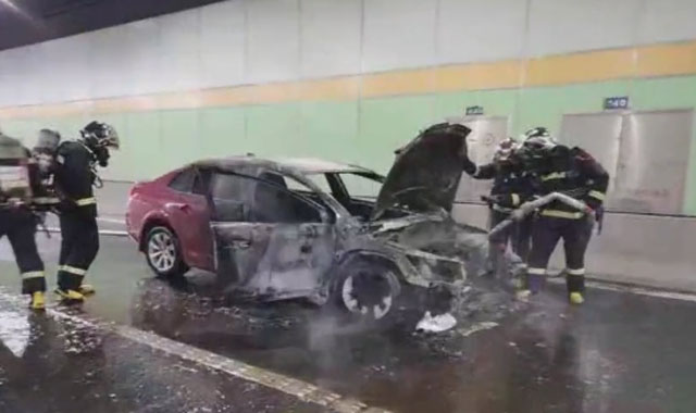 隧道內(nèi)轎車自燃,情況危急!先導(dǎo)處置車攜手消防員逆行救援。天氣炎熱,風(fēng)高物燥??諝鉂穸群艿停苋菀装l(fā)生火災(zāi)。這時(shí)突發(fā)緊急情況,隧道的一輛小轎車發(fā)生了火情,自燃了。時(shí)間緊迫先導(dǎo)處置車第一時(shí)間趕到現(xiàn)場(chǎng)進(jìn)行處置。因?yàn)樗淼辣容^狹窄,又是下班的完高峰期。自燃導(dǎo)致了高速車輛大排長(zhǎng)龍。消防車比較大開(kāi)到隧道口就沒(méi)辦法往前開(kāi)了。為了讓消防車盡快到達(dá)現(xiàn)場(chǎng)滅火。先導(dǎo)處置車的人員在指揮交通秩序。搭載消防隊(duì)員進(jìn)隧道滅火。很快現(xiàn)場(chǎng)明火被撲滅,自燃車輛被拖離。經(jīng)多先導(dǎo)處置車部門聯(lián)動(dòng)處置,快速消除車輛燃爆險(xiǎn)情,交通恢復(fù)正常。