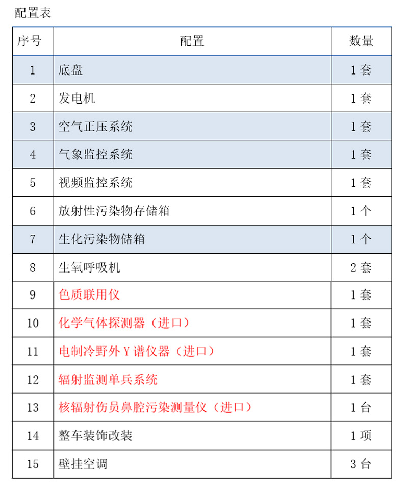 監(jiān)測車可以全天候監(jiān)測,整車設(shè)計(jì)合理舒適。結(jié)構(gòu)安全可靠,密封防水好,功能集成一體化程度高。核化應(yīng)急監(jiān)測車還配備防化品和核輻射傷員鼻腔污染測量儀。核污染有輻射可以保護(hù)操作人員身體健康。整個(gè)電纜電路系統(tǒng)都是國際標(biāo)準(zhǔn)的。哪個(gè)國家都適用。大氣監(jiān)測,水質(zhì)監(jiān)測,大氣監(jiān)測。監(jiān)測車都可以勝任不同場合有不同作用。監(jiān)測車有效的應(yīng)急可以贏得寶貴時(shí)間??s短事故處理時(shí)間。減少損失。
