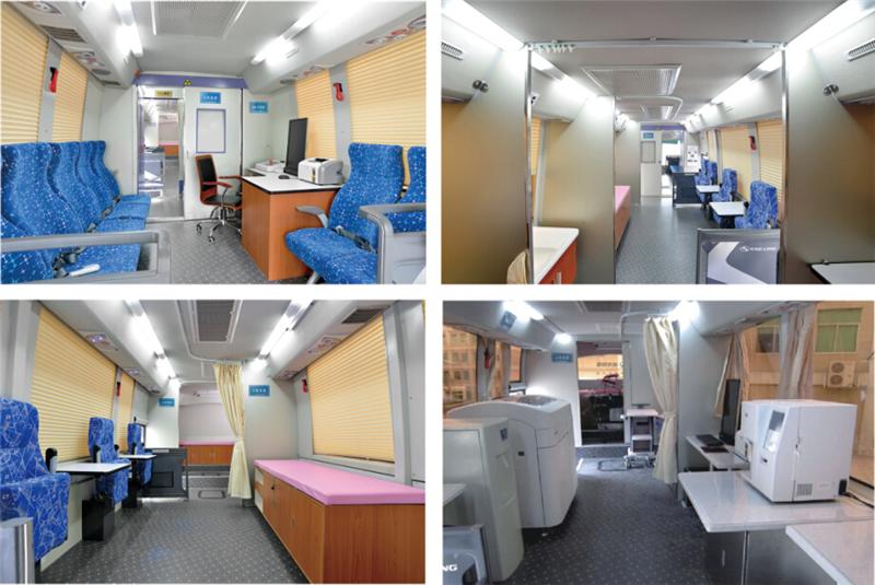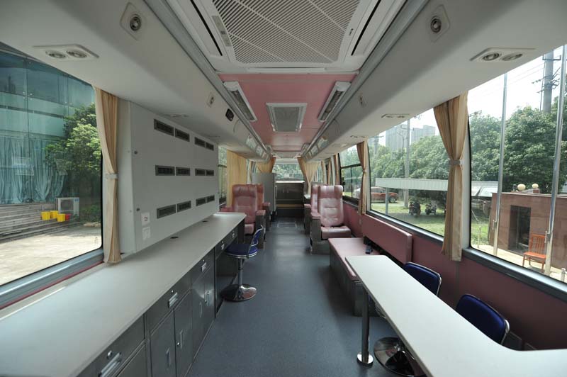 專業(yè)的流動(dòng)獻(xiàn)血車征詢區(qū)、體檢區(qū)、采血區(qū)、休息區(qū)布置合理,綠色、環(huán)保的特點(diǎn),實(shí)現(xiàn)廢氣零排放。車內(nèi)配置了頭等艙式獻(xiàn)血椅,獻(xiàn)血車實(shí)際所用到醫(yī)療設(shè)備一應(yīng)俱全,總體空間十分寬闊。大部分流動(dòng)的獻(xiàn)血車都有冷暖空調(diào)系統(tǒng)、熱合機(jī)臺(tái)、醫(yī)用血液冷藏箱、工作臺(tái)椅、飲水機(jī)、烘手機(jī)、配電柜、采血椅、采血臺(tái)、紫外線消毒燈、 污物桶、滅火器、排風(fēng)系統(tǒng)等。全車配備先進(jìn)的平穩(wěn)支撐系統(tǒng),配置了網(wǎng)絡(luò)WIFI,空氣凈化消毒系統(tǒng),確保獻(xiàn)血活動(dòng)開(kāi)展時(shí)車內(nèi)空氣的潔凈衛(wèi)生,是一個(gè)移動(dòng)體檢中心可用于現(xiàn)場(chǎng)體檢和采血。