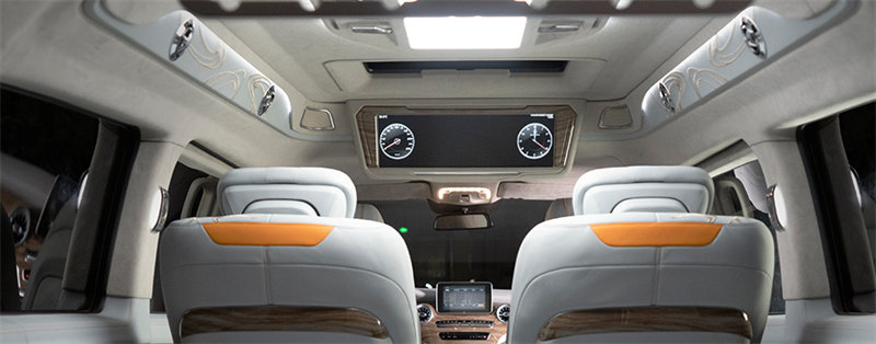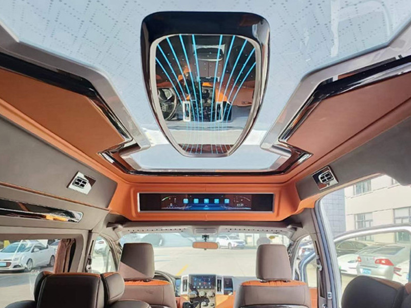 改裝商務(wù)車集成式總控顯示屏,燈光、音響、投影,一觸即控,隨時辦公 休閑,配備懸浮式多媒體屏幕雅馬哈音響系統(tǒng)3M輕量型隔音